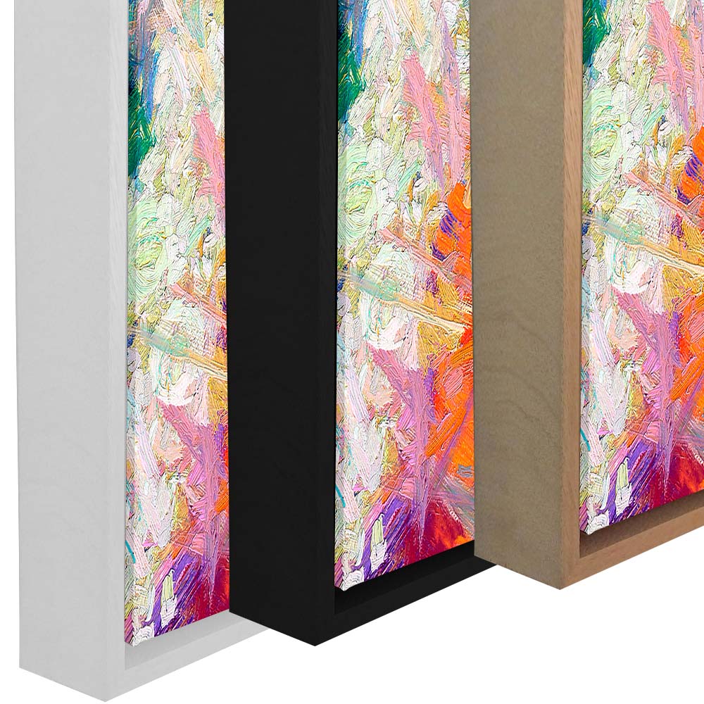 Our canvas prints are fitted with an outer floating frame in a choice of natural oak, satin black or satin white finish that is made from timber composite materials and features a 45mm deep profile.