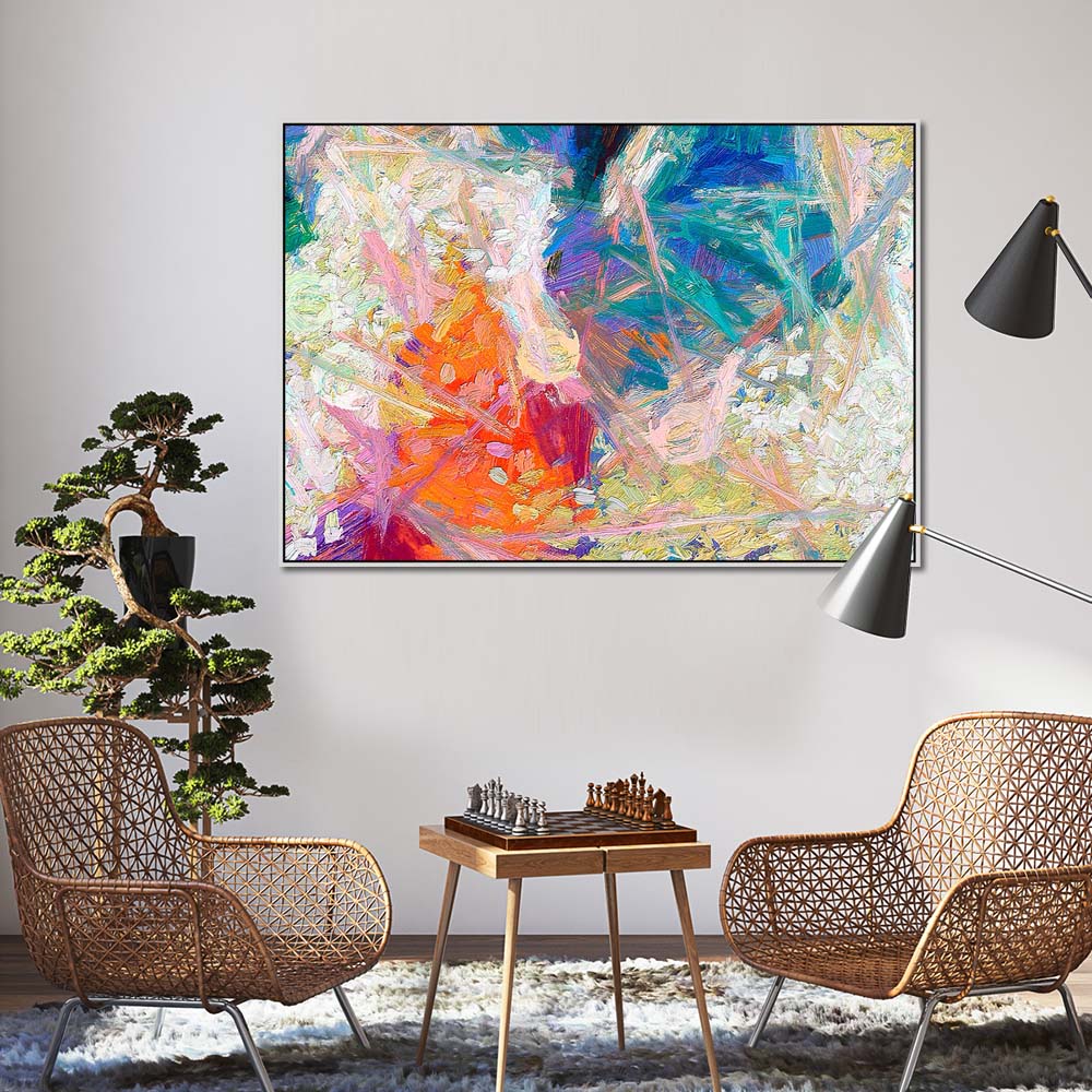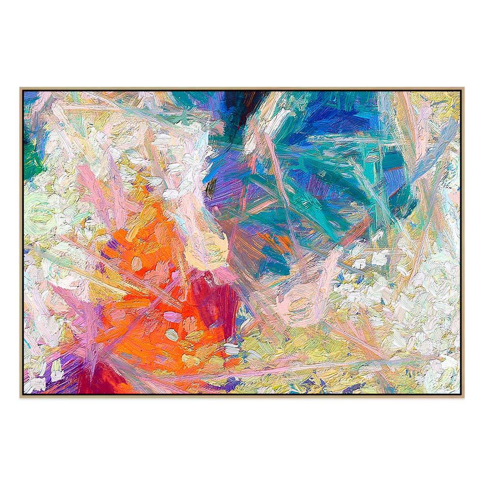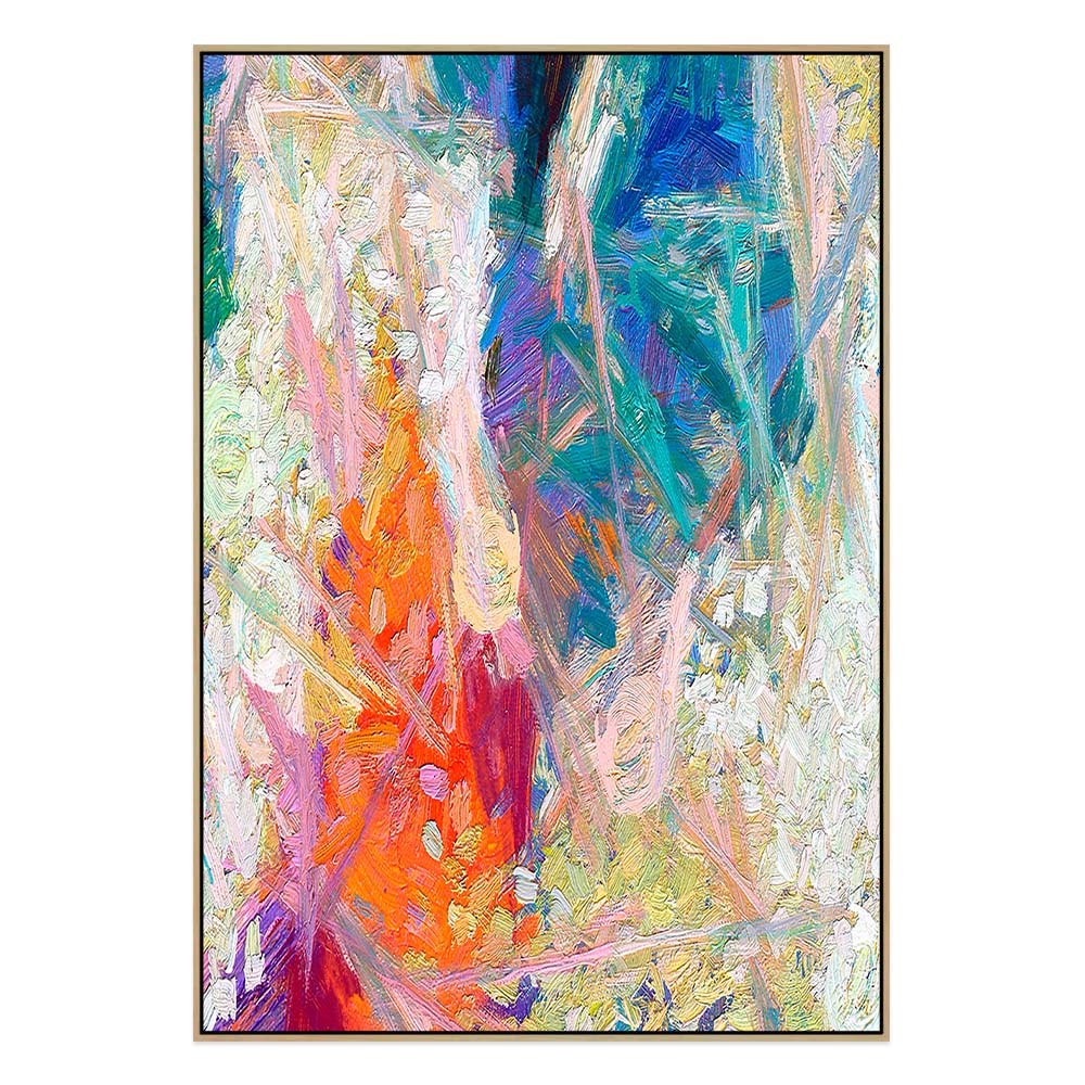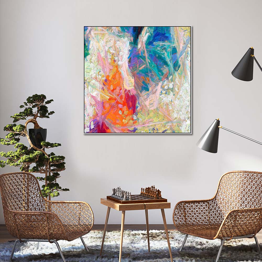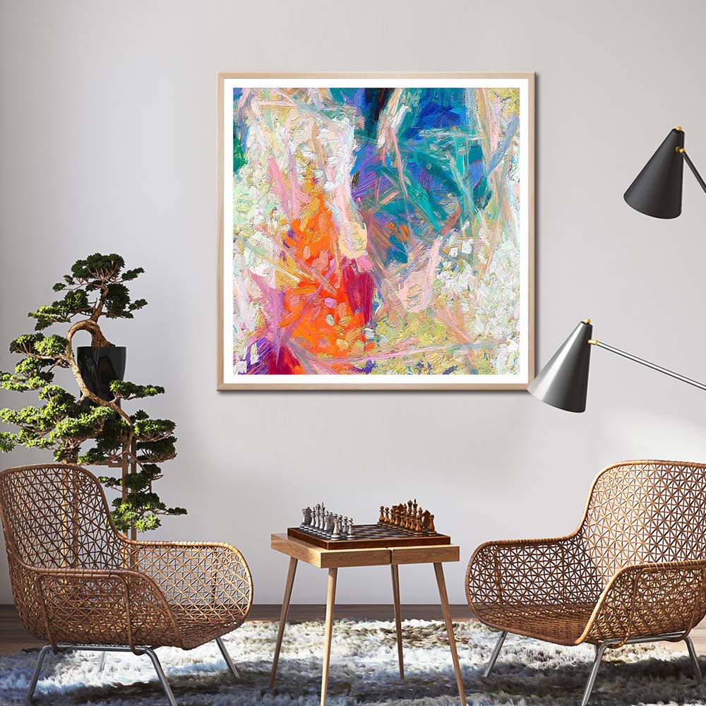 This contemporary abstract artwork explores the full spectrum of colour in a refined, layered composition. With its balance of vibrancy and sophistication, it offers a striking focal point suited to modern interiors and curated collections.