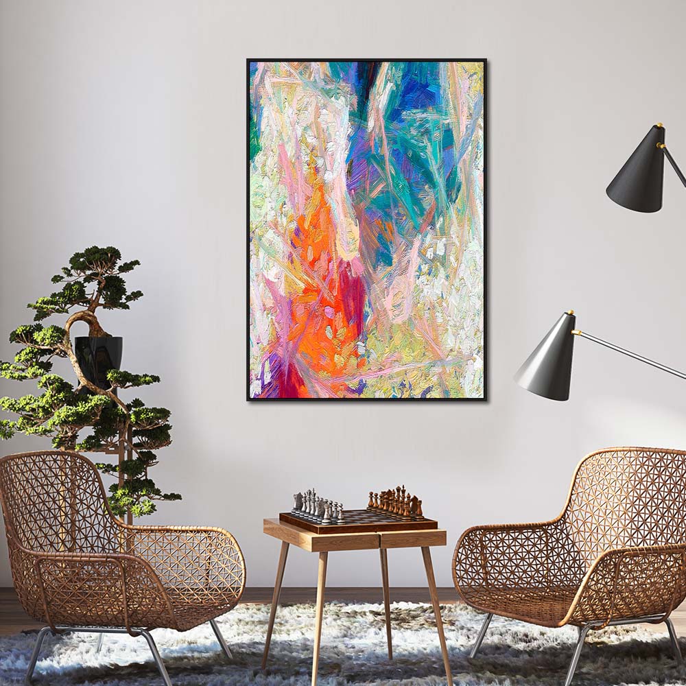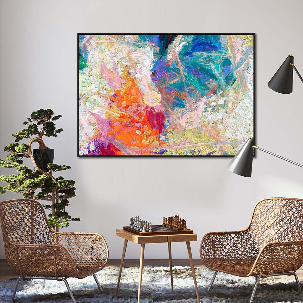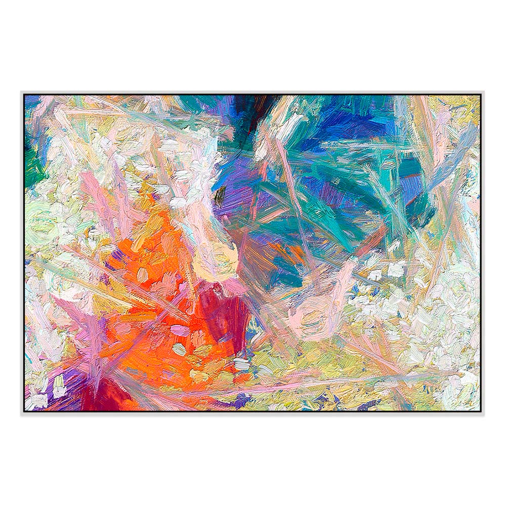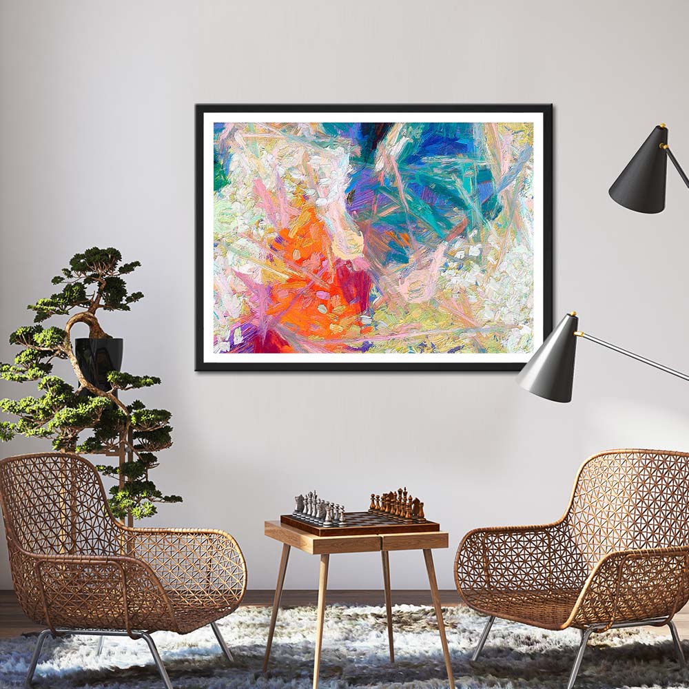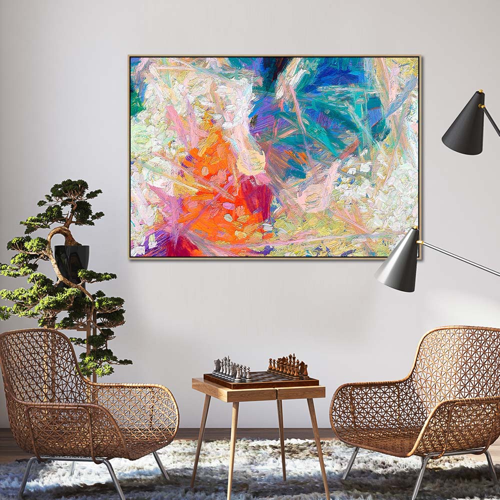 This contemporary abstract artwork explores the full spectrum of colour in a refined, layered composition. With its balance of vibrancy and sophistication, it offers a striking focal point suited to modern interiors and curated collections.