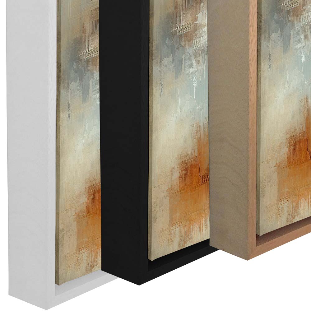 Our canvas prints are fitted with an outer floating frame in a choice of natural oak, satin black or satin white finish that is made from timber composite materials and features a 45mm deep profile.