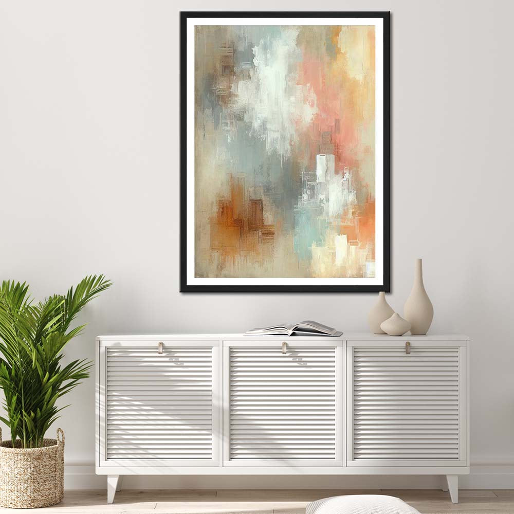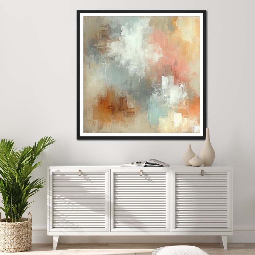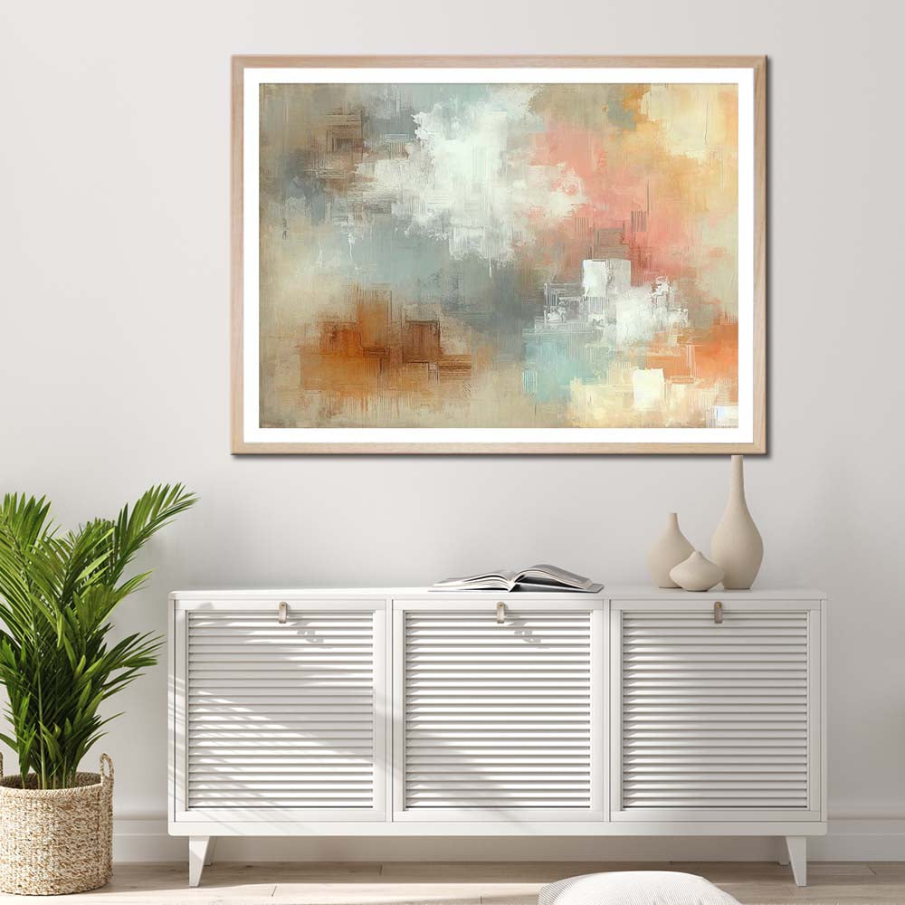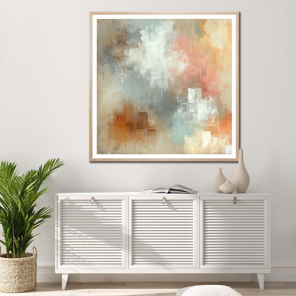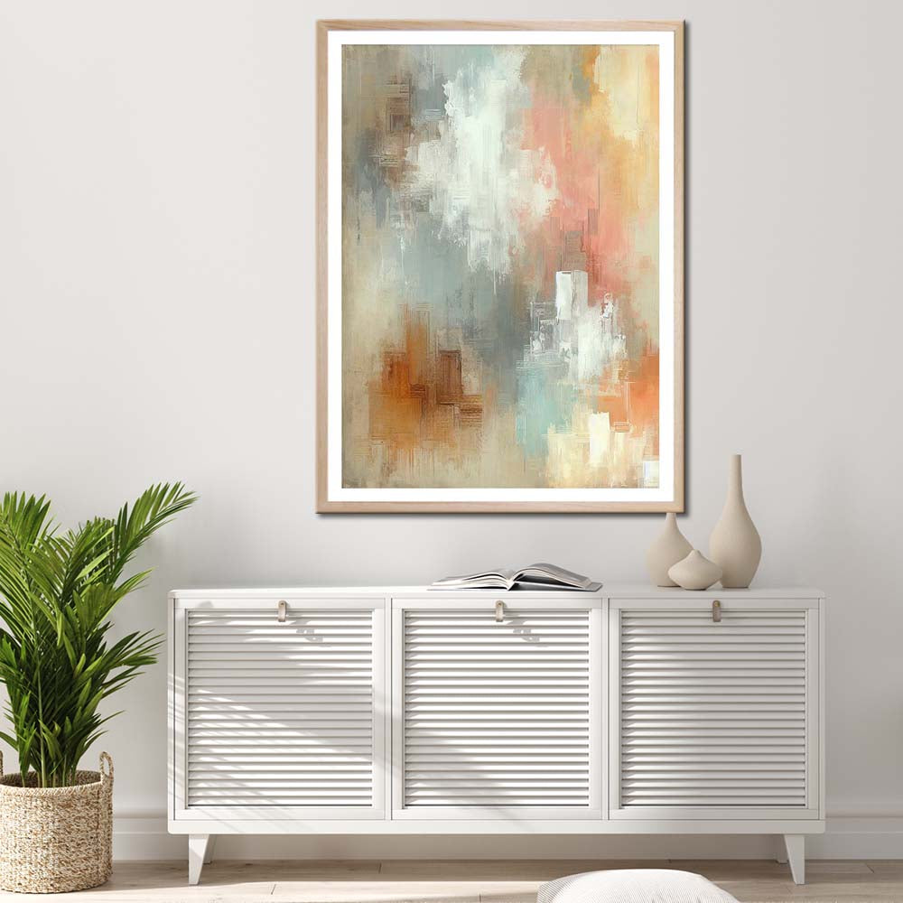 This abstract artwork blends pastel hues into a dynamic, energetic design. A versatile wall art print that brings colour, creativity, and contemporary style to any space.