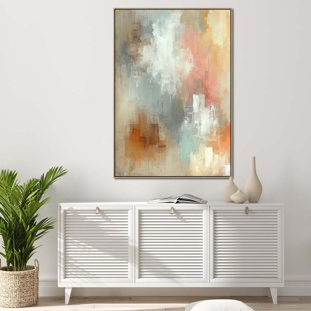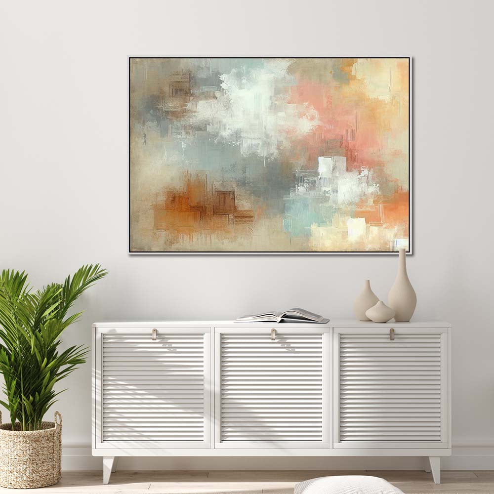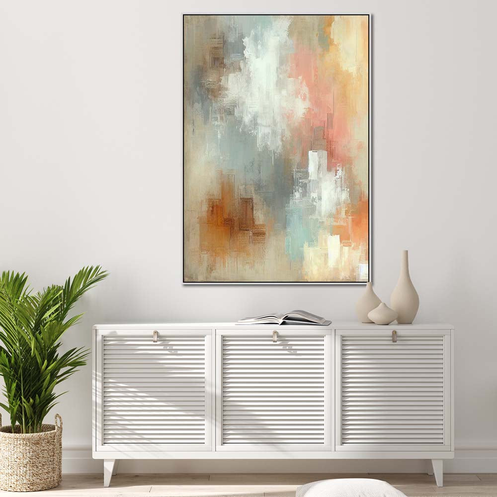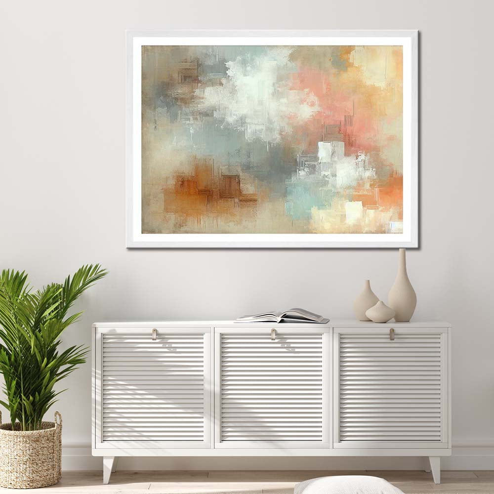 This abstract artwork blends pastel hues into a dynamic, energetic design. A versatile wall art print that brings colour, creativity, and contemporary style to any space.