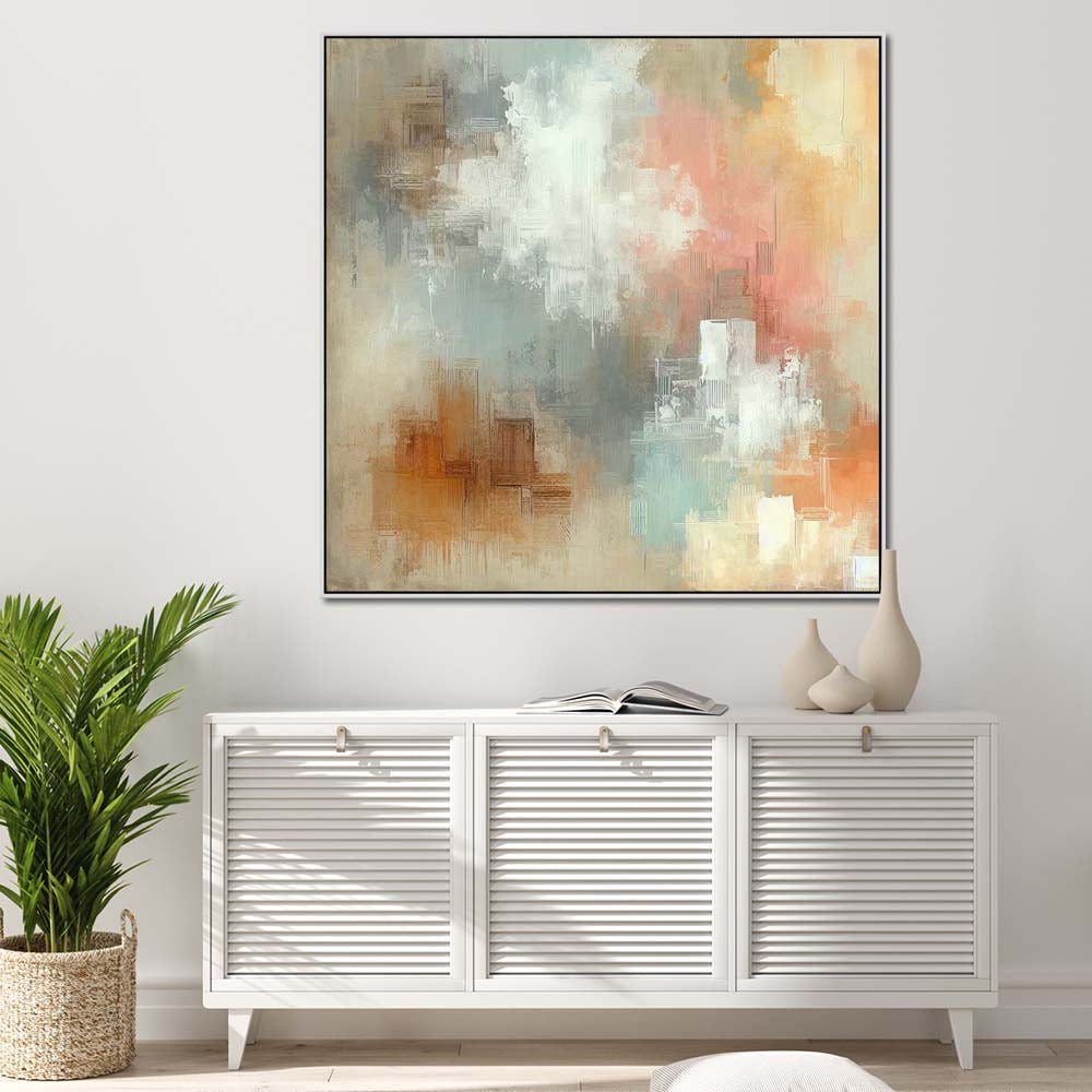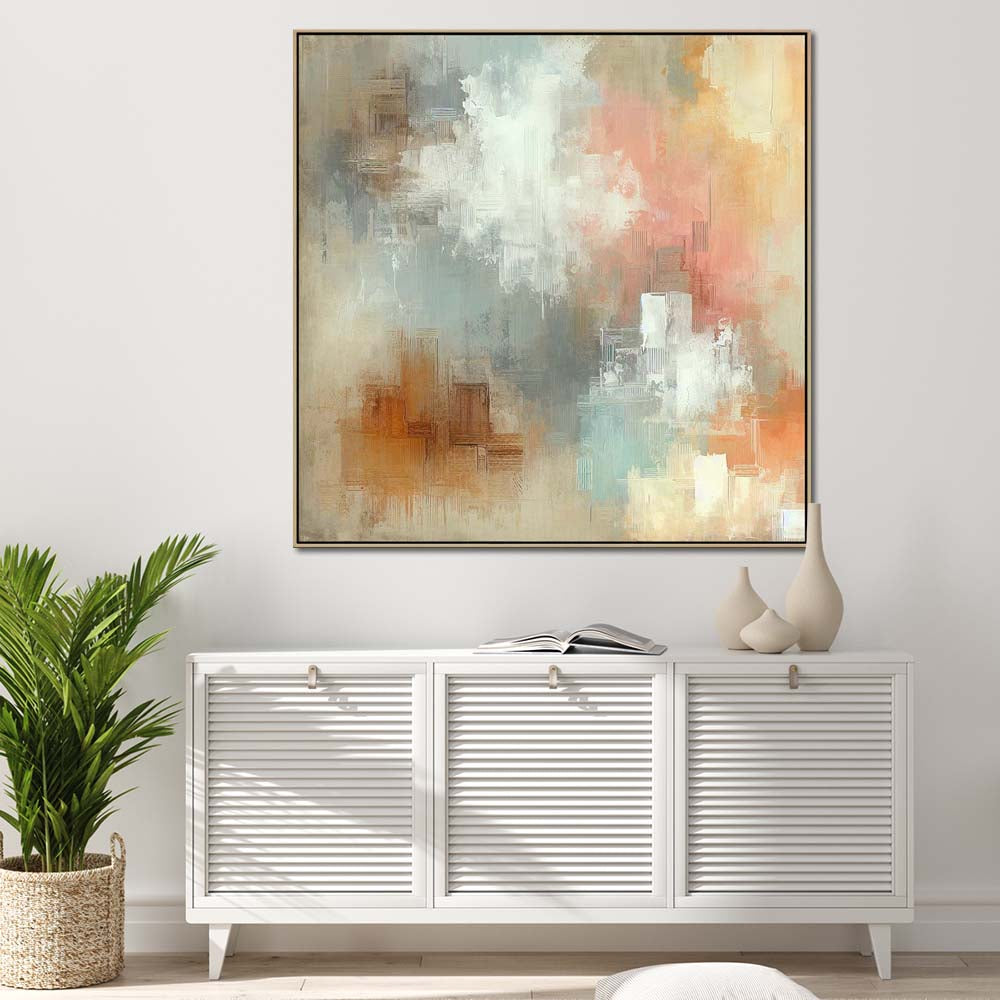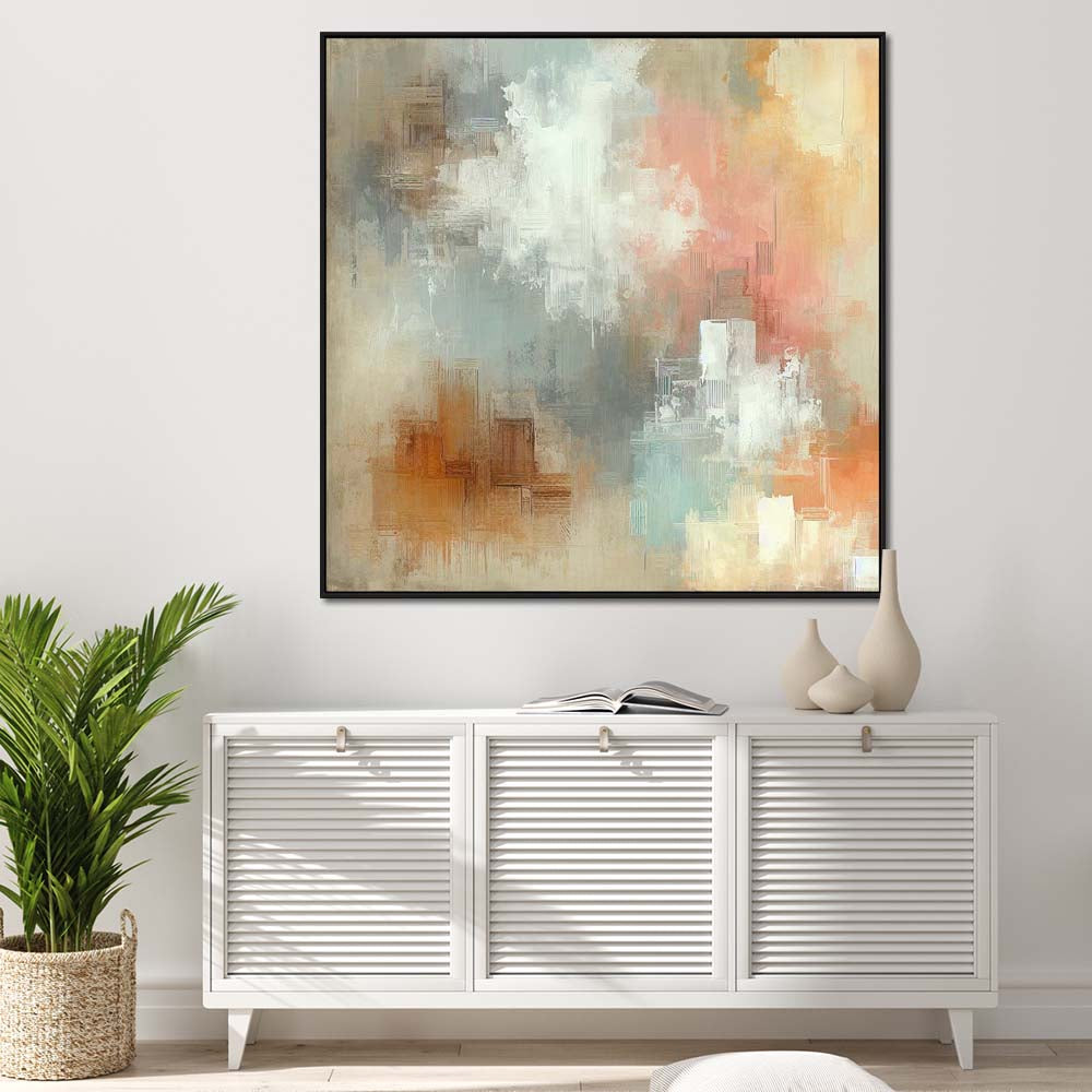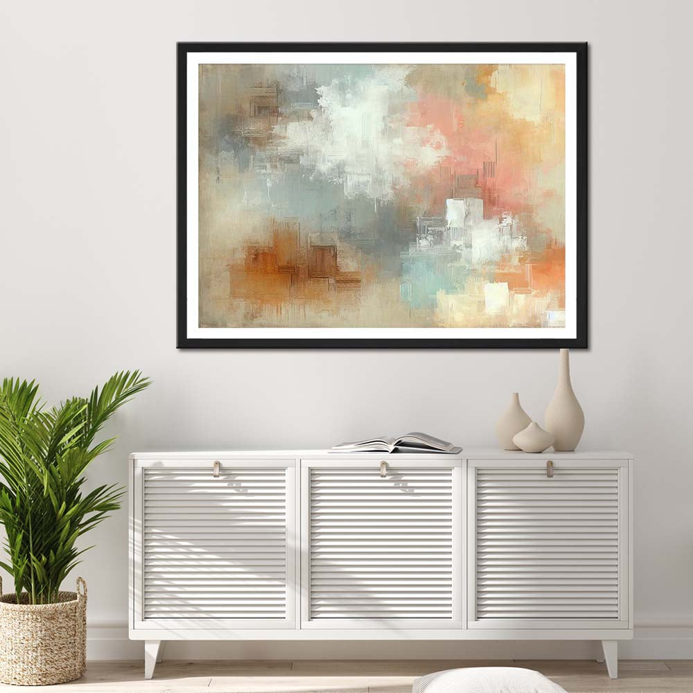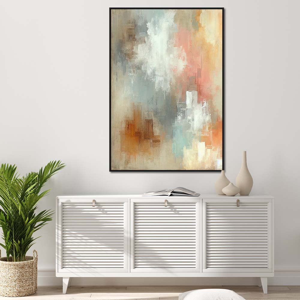 This abstract artwork blends pastel hues into a dynamic, energetic design. A versatile wall art print that brings colour, creativity, and contemporary style to any space.