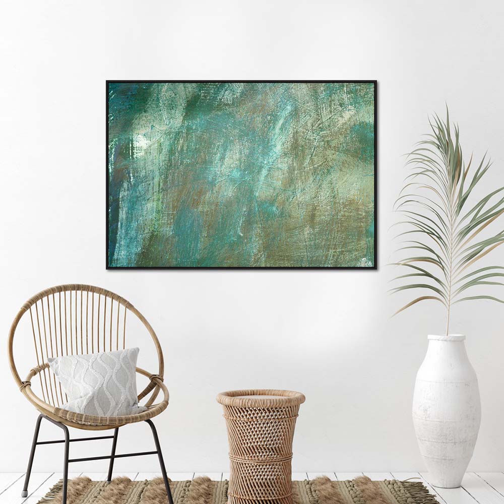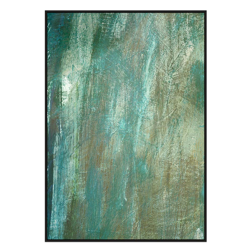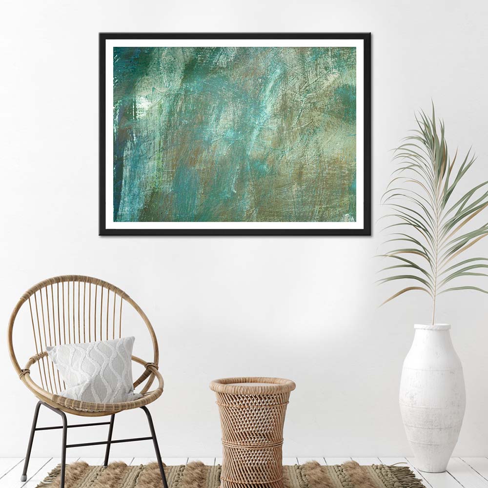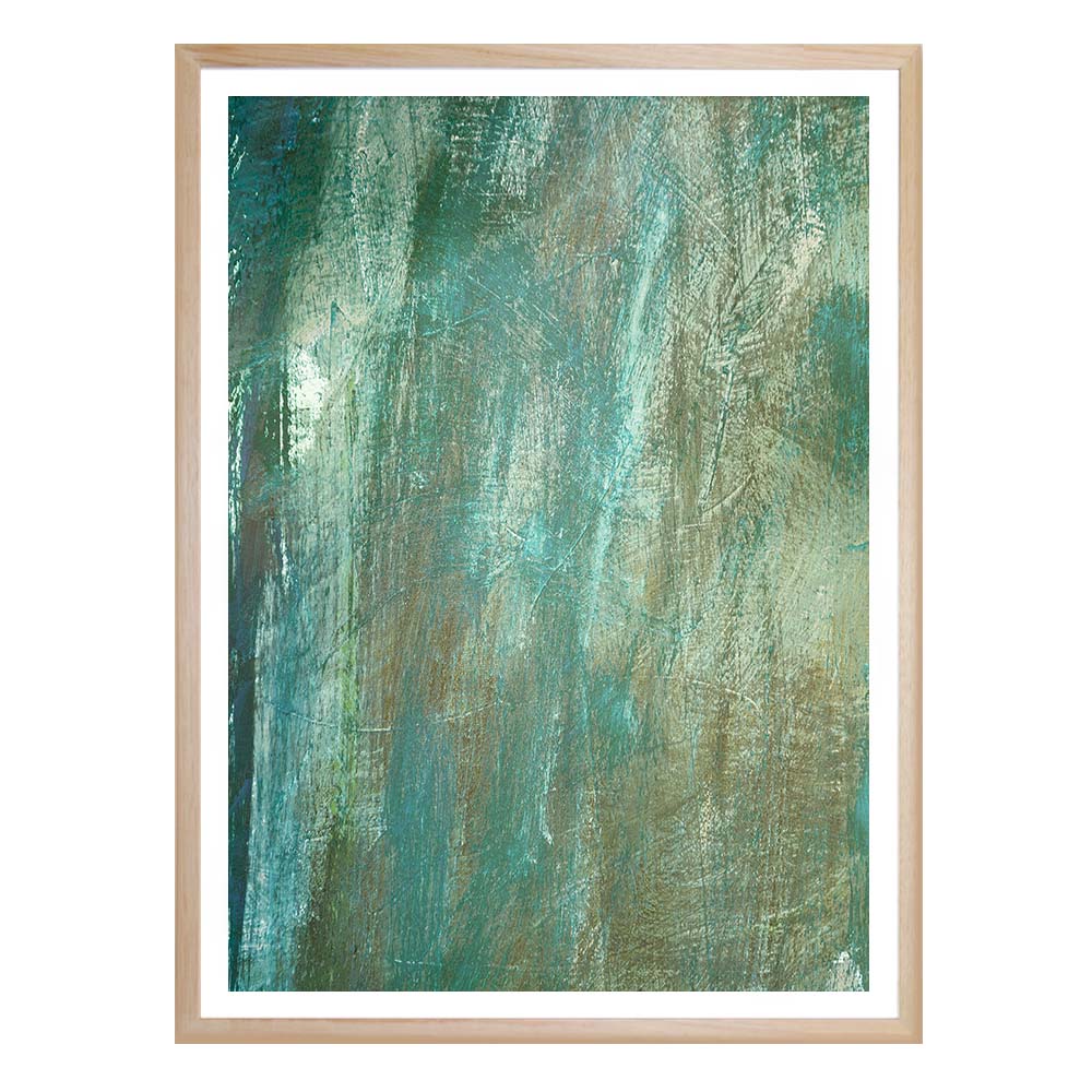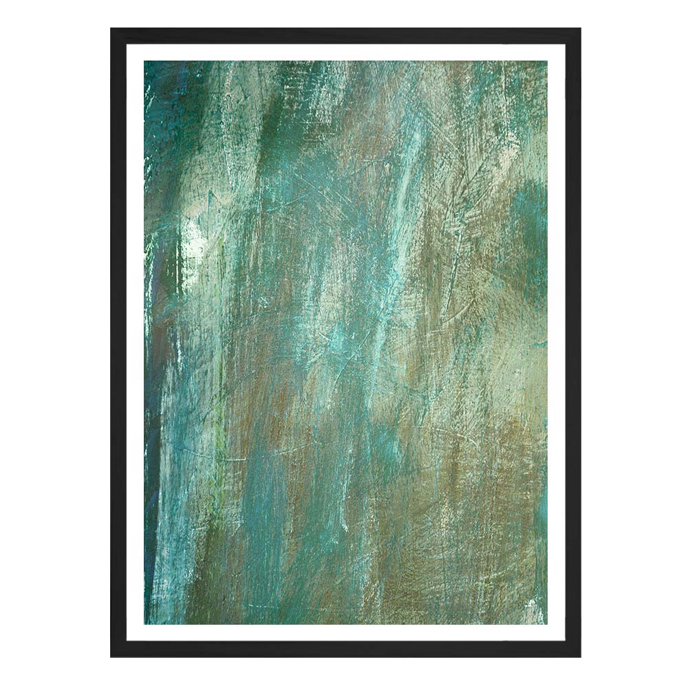 This abstract artwork features layered green tones that evoke nature and tranquility. A modern wall art print that brings freshness and calm to any space.