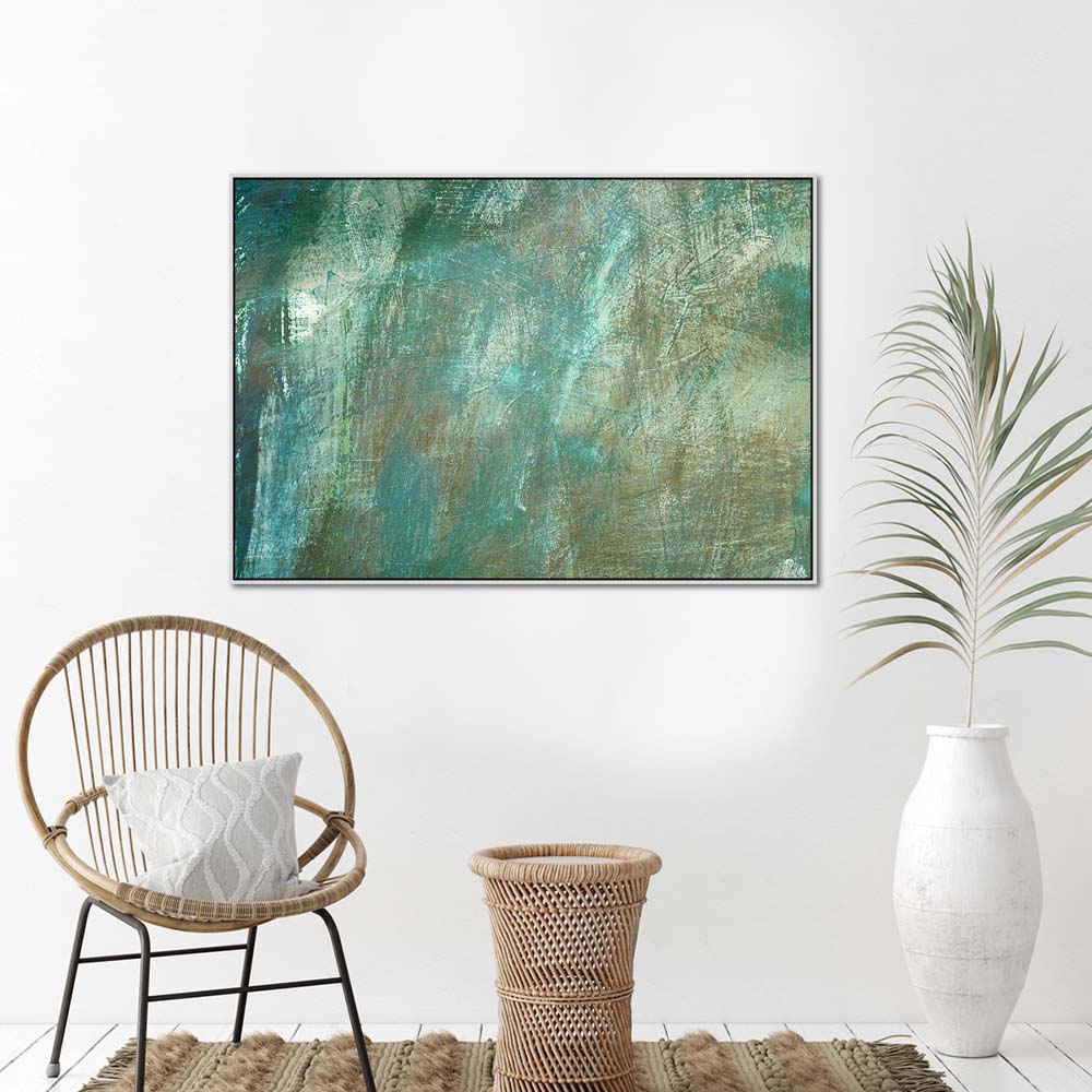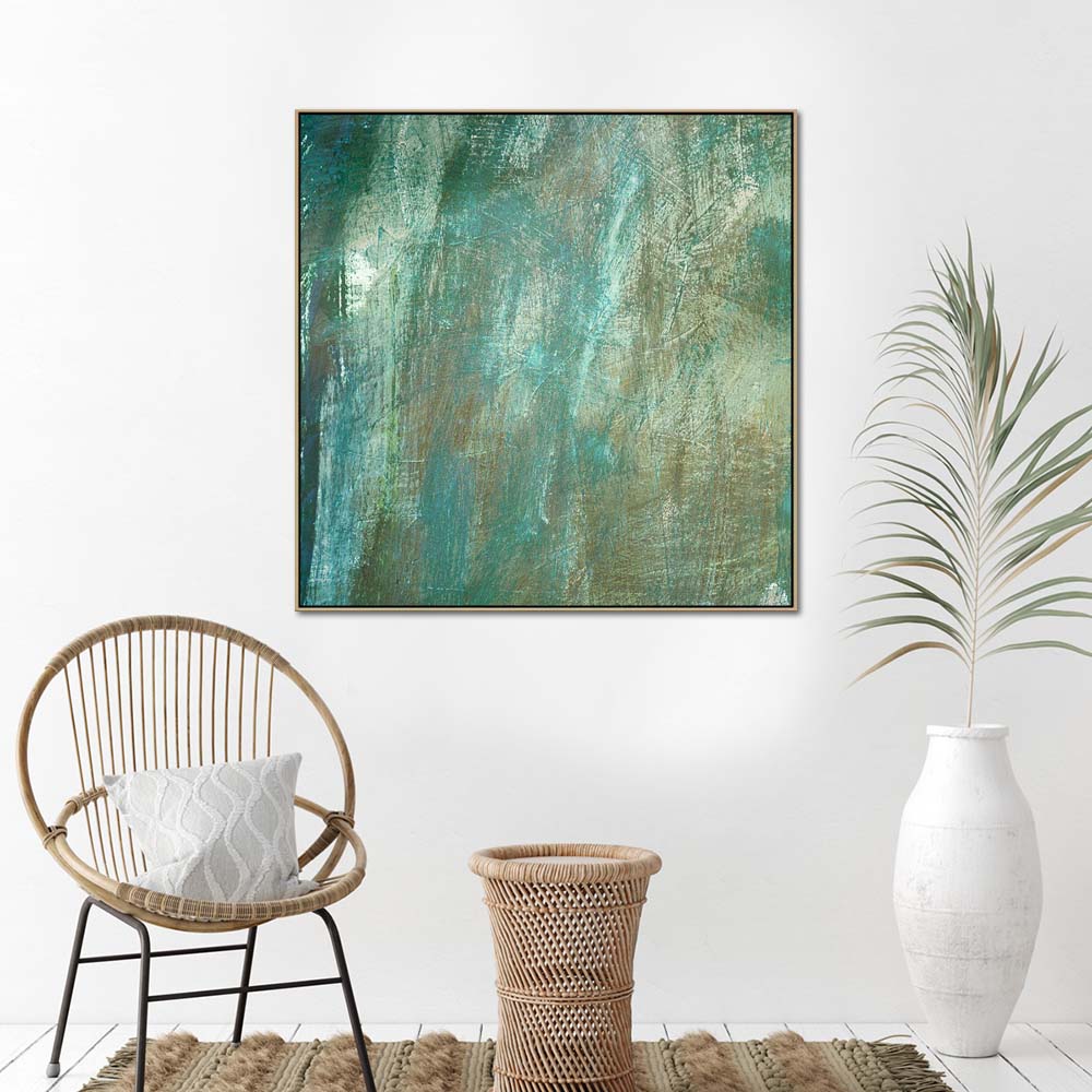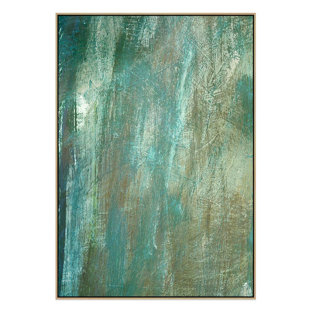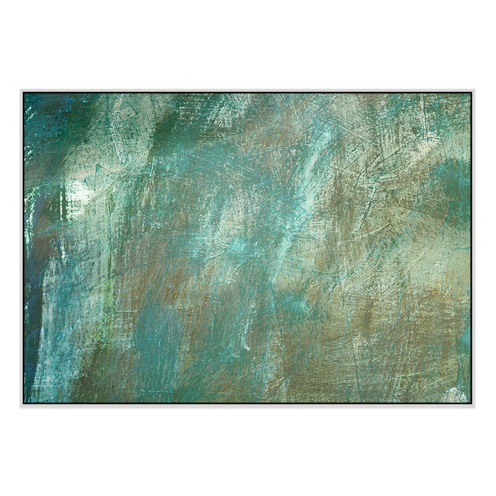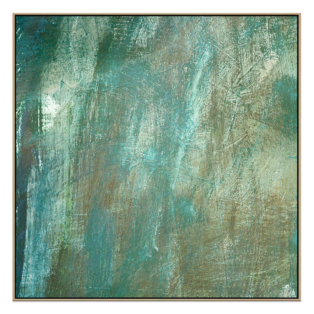 This abstract artwork features layered green tones that evoke nature and tranquility. A modern wall art print that brings freshness and calm to any space.