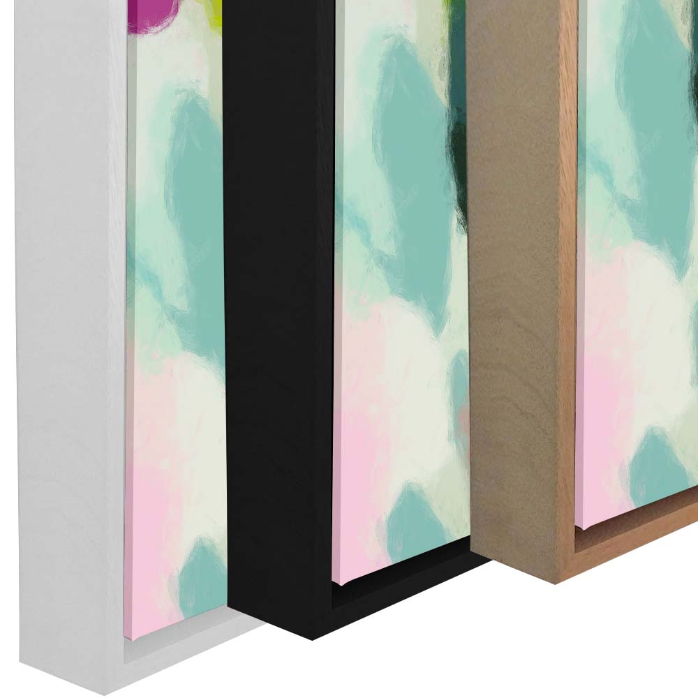 Our canvas prints are fitted with an outer floating frame in a choice of natural oak, satin black or satin white finish that is made from timber composite materials and features a 45mm deep profile.