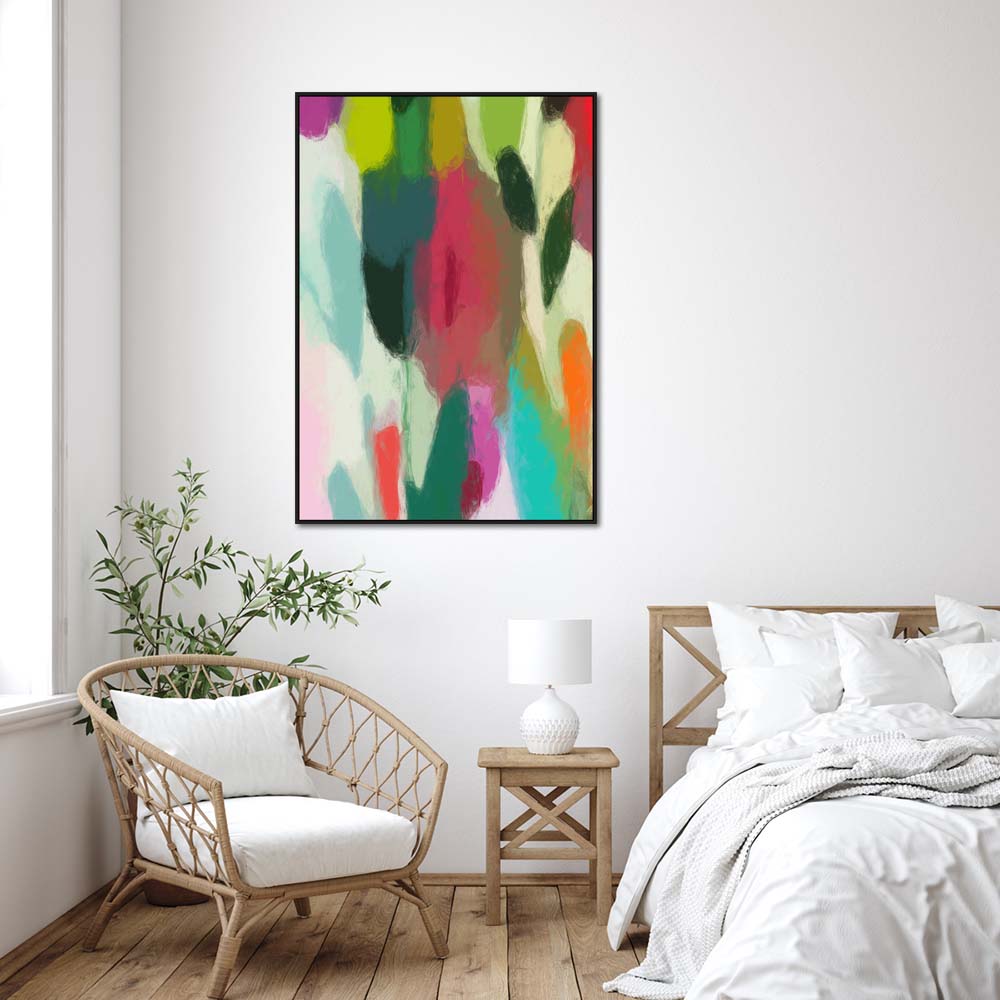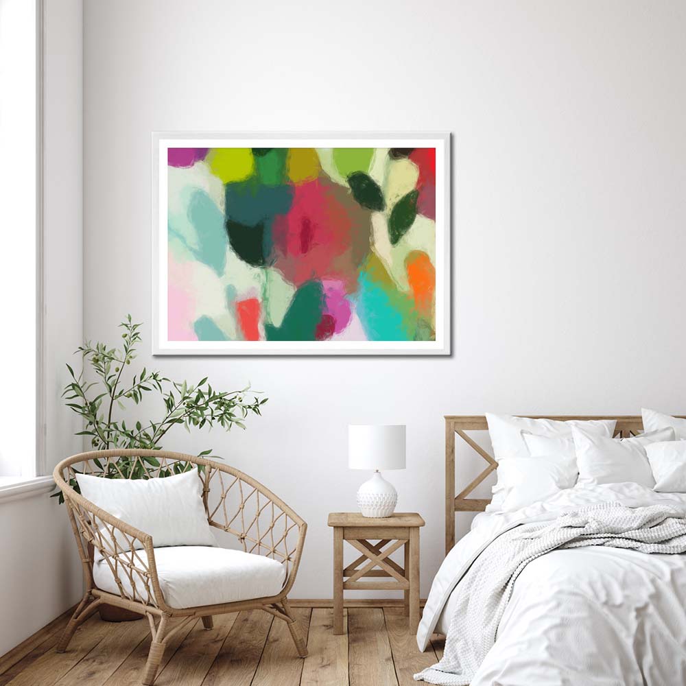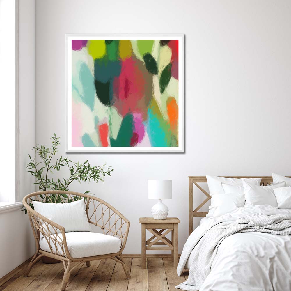 This abstract artwork bursts with vibrant colour and expressive movement, creating an uplifting focal point for any space. A modern wall art print that adds energy, creativity, and a bold contemporary feel to your home.