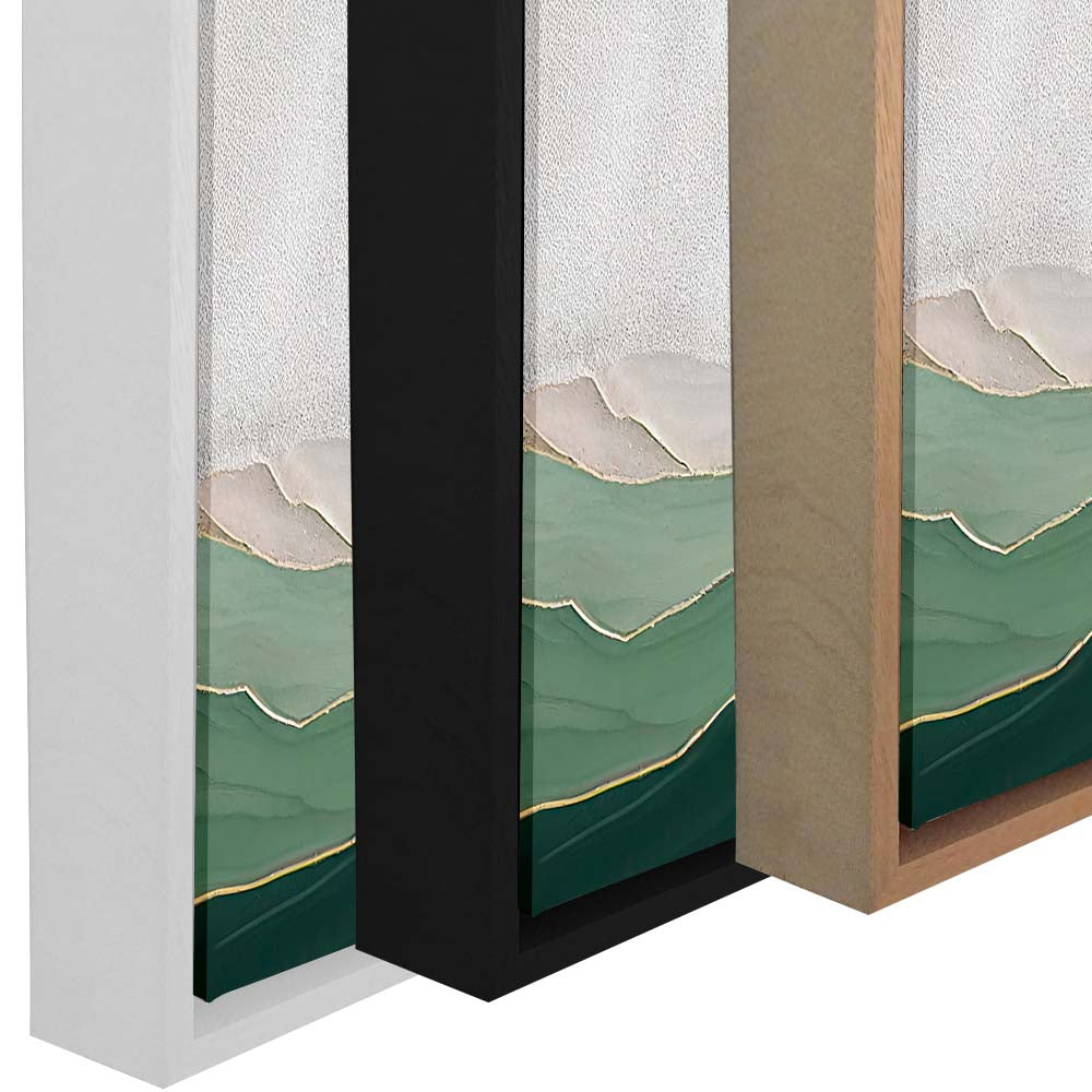 Our canvas prints are fitted with an outer floating frame in a choice of natural oak, satin black or satin white finish that is made from timber composite materials and features a 45mm deep profile.