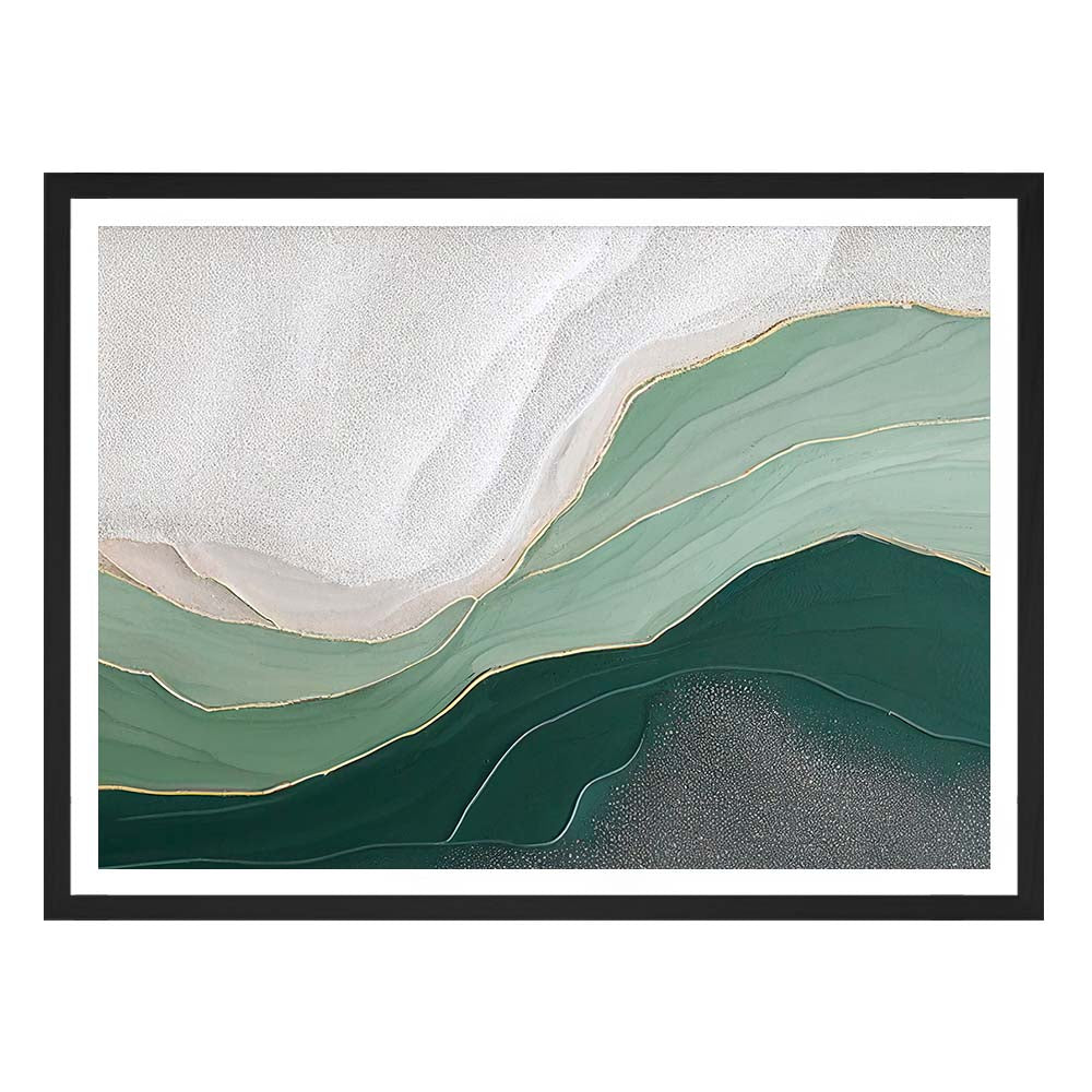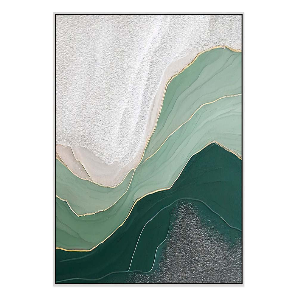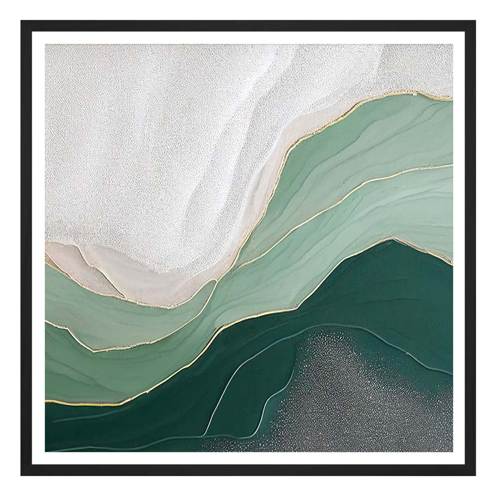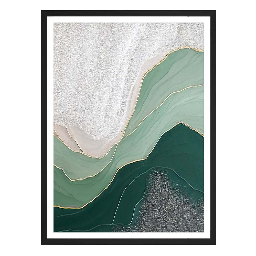 This modern abstract artwork blends soothing green, soft grey, and crisp white tones to create a sense of balance and calm. Perfect for contemporary interiors, it adds a fresh, natural elegance that complements both minimalist and coastal spaces.