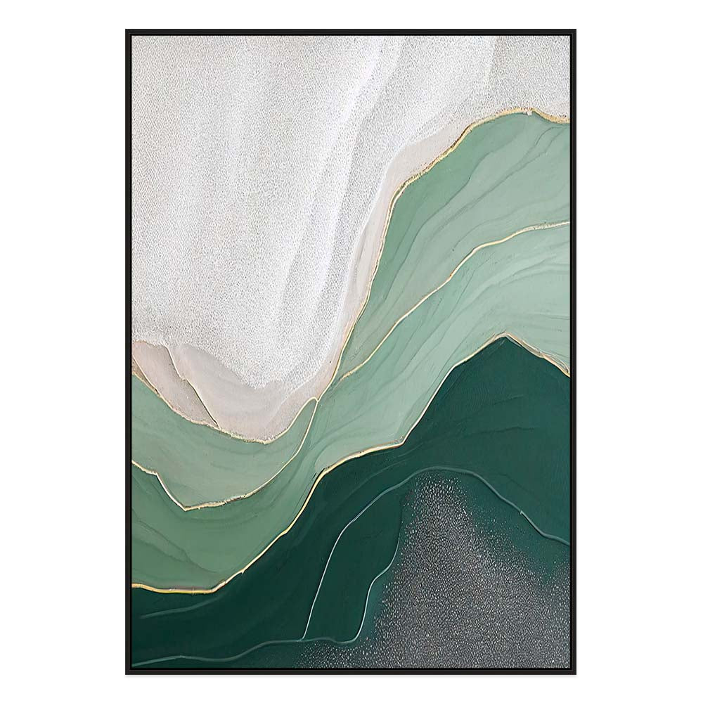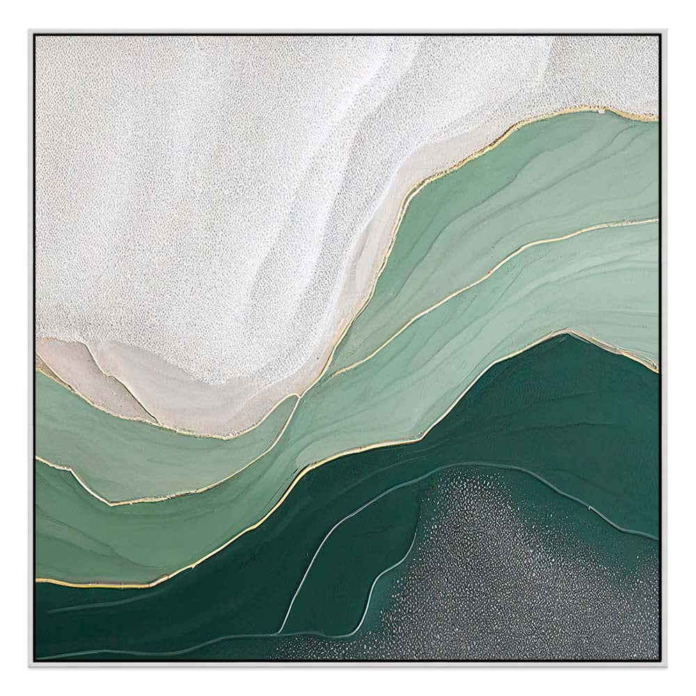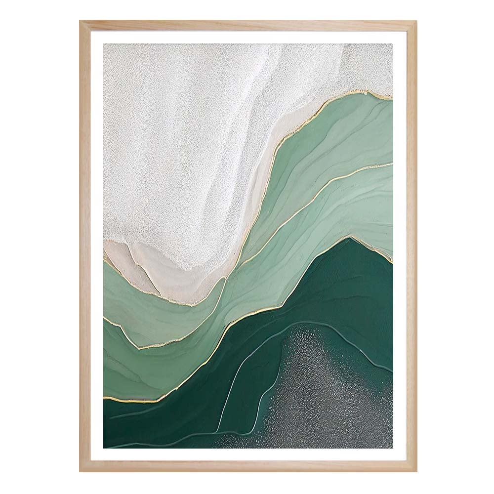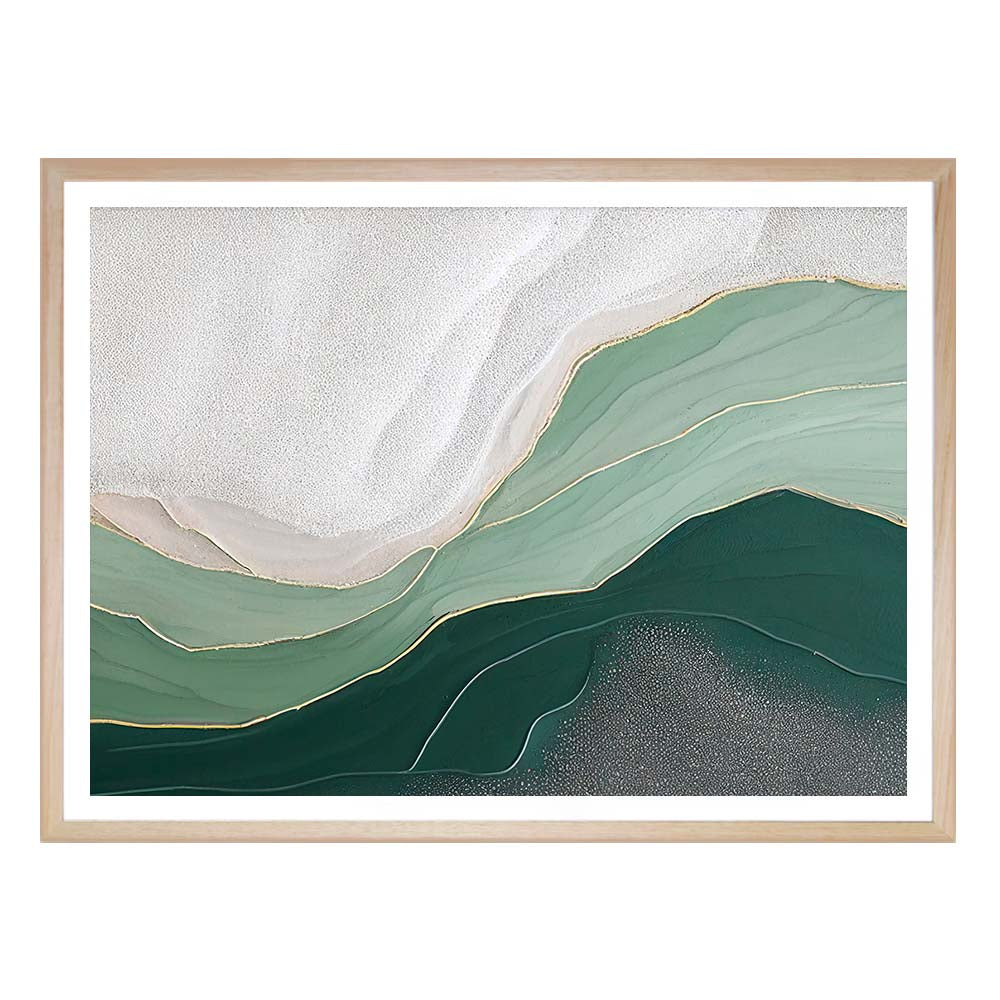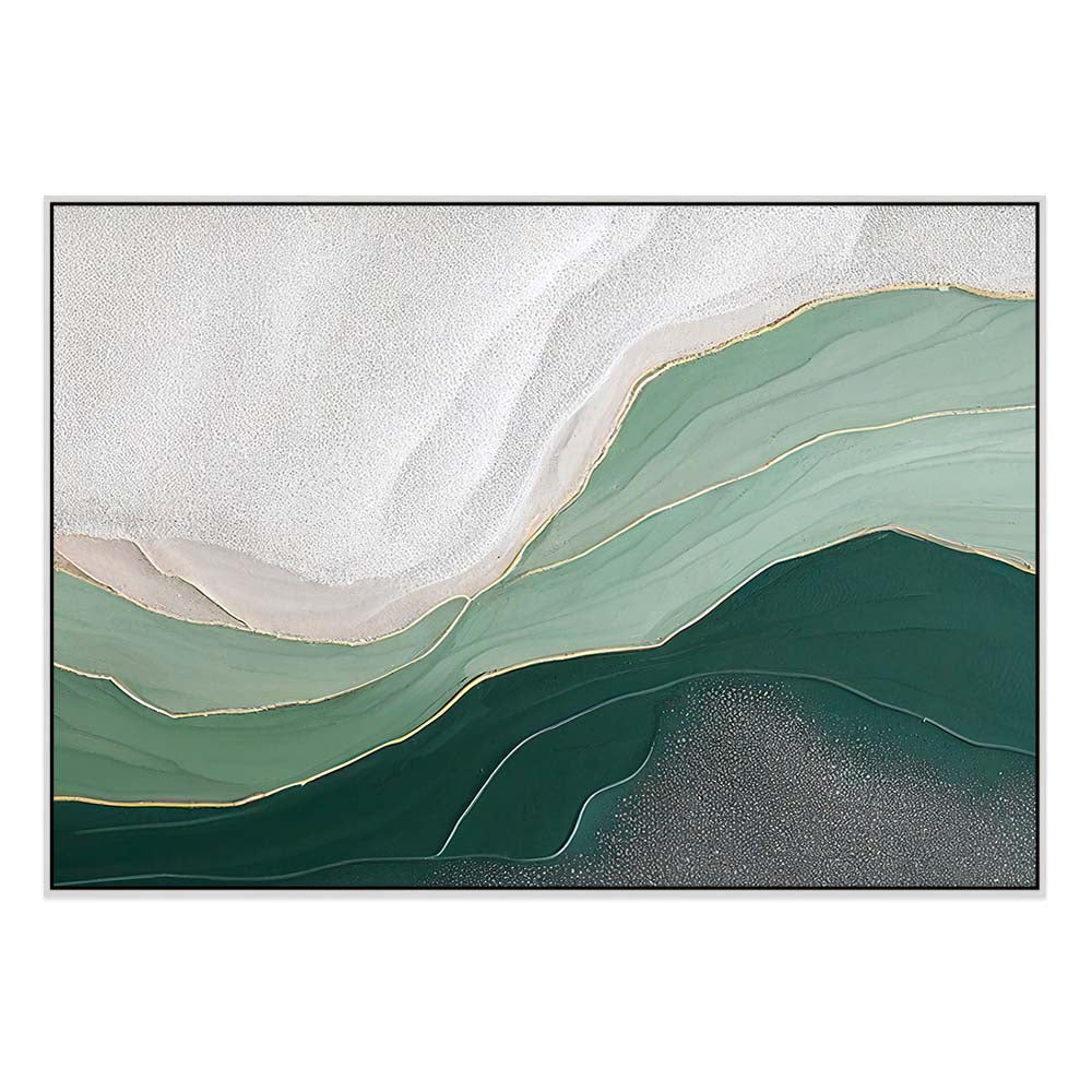 This modern abstract artwork blends soothing green, soft grey, and crisp white tones to create a sense of balance and calm. Perfect for contemporary interiors, it adds a fresh, natural elegance that complements both minimalist and coastal spaces.