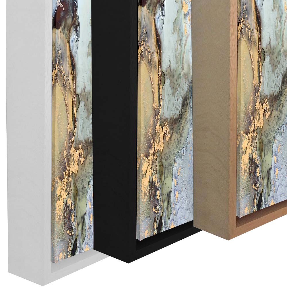Our canvas prints are fitted with an outer floating frame in a choice of natural oak, satin black or satin white finish that is made from timber composite materials and features a 45mm deep profile.