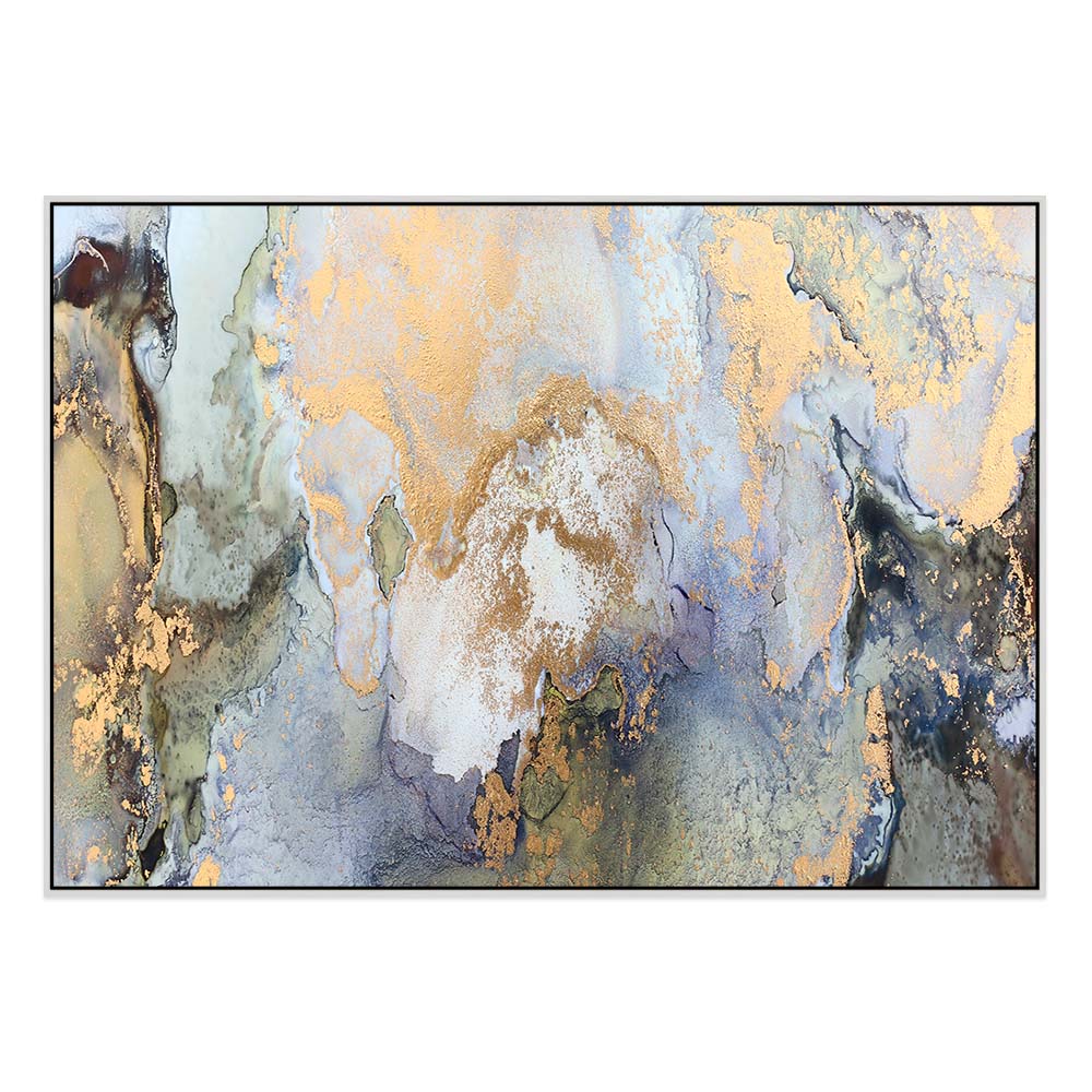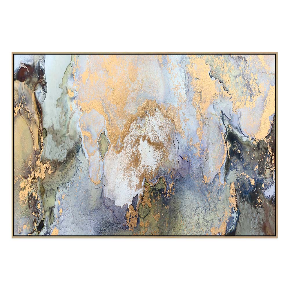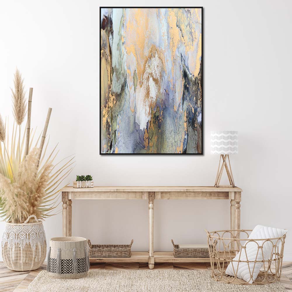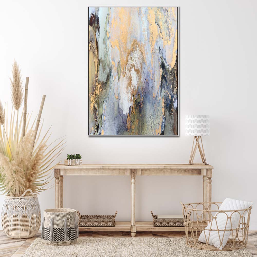 This abstract artwork features soft tones highlighted by elegant touches of gold. A modern wall art piece that adds warmth, texture, and a subtle hint of luxury to any interior.
