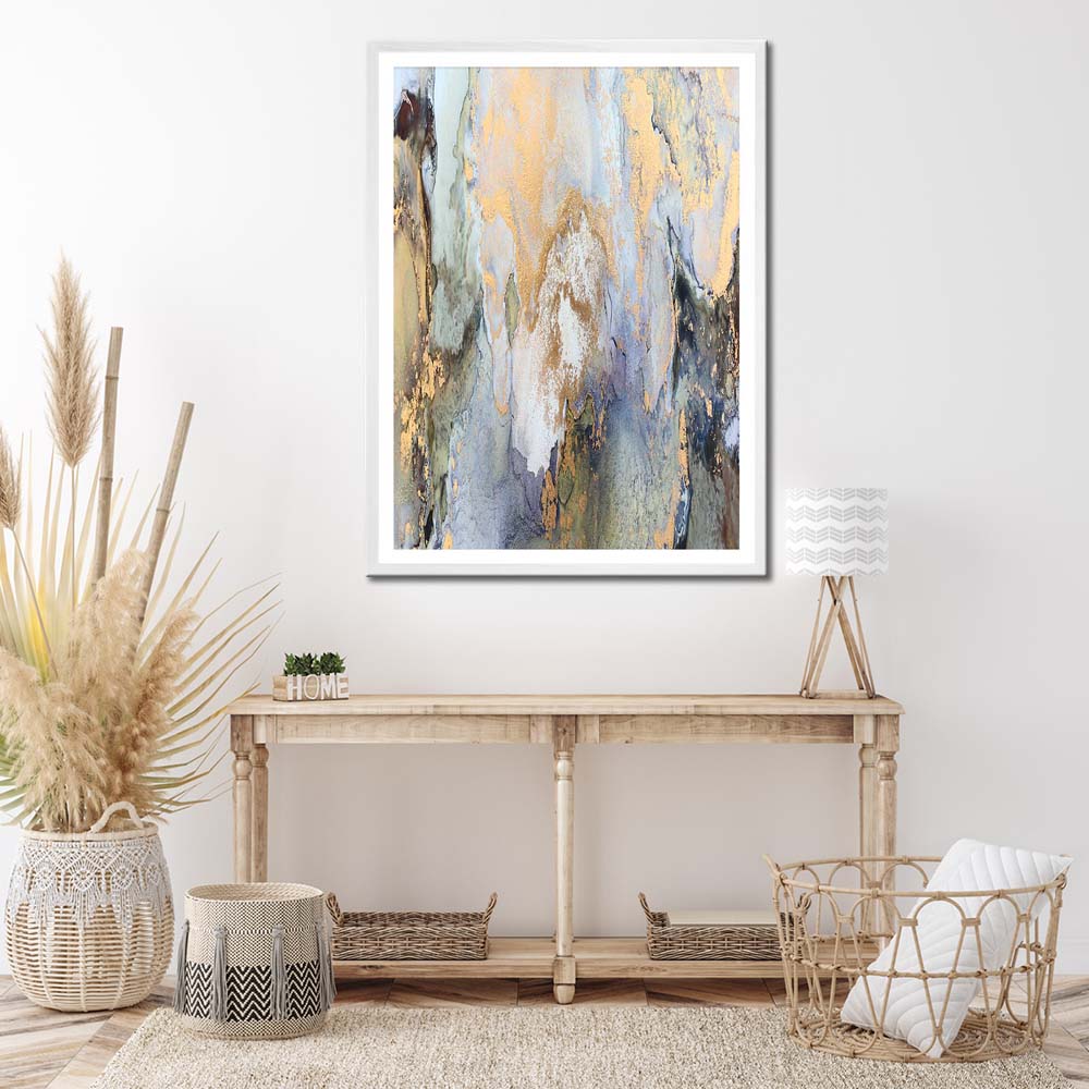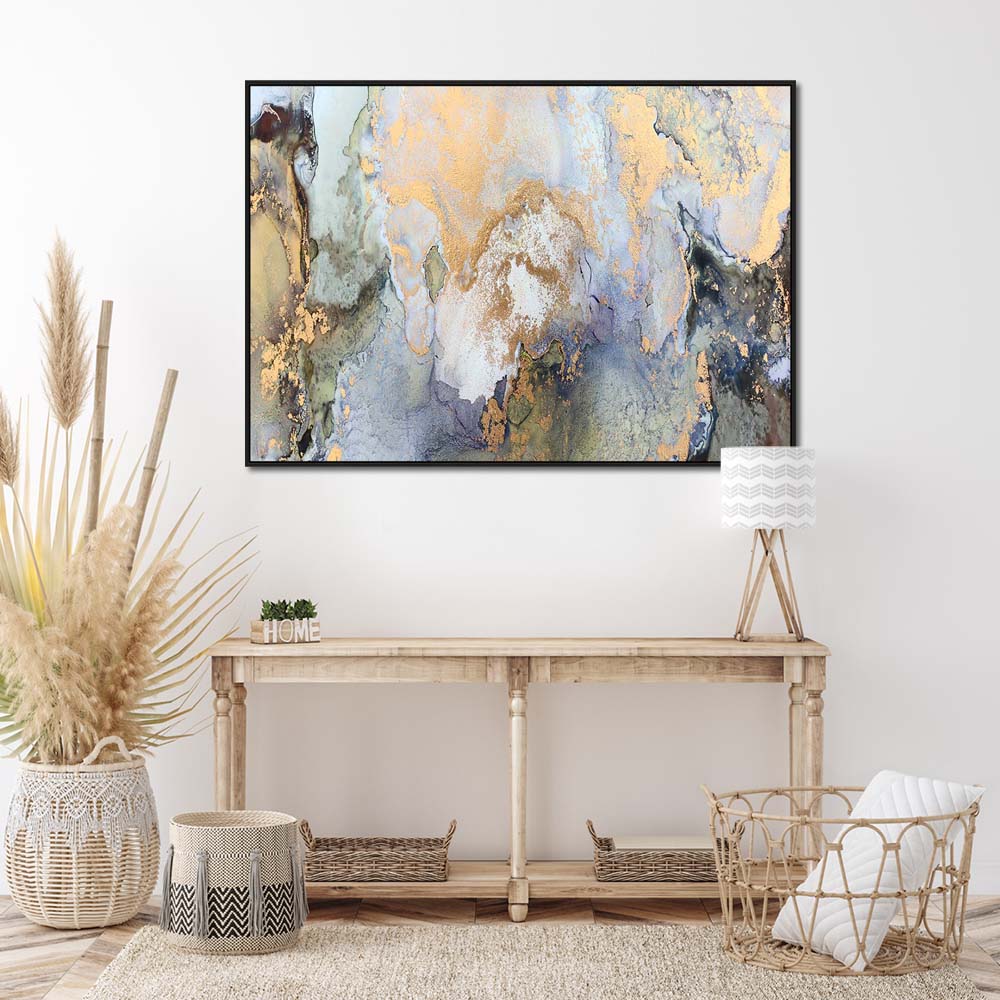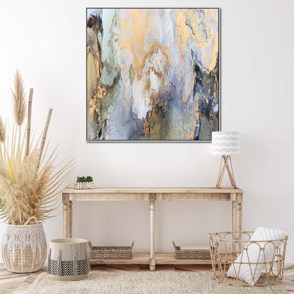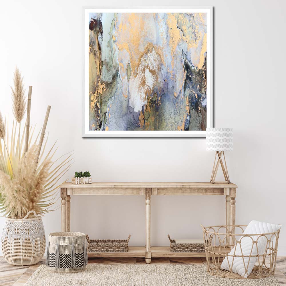 This abstract artwork features soft tones highlighted by elegant touches of gold. A modern wall art piece that adds warmth, texture, and a subtle hint of luxury to any interior.