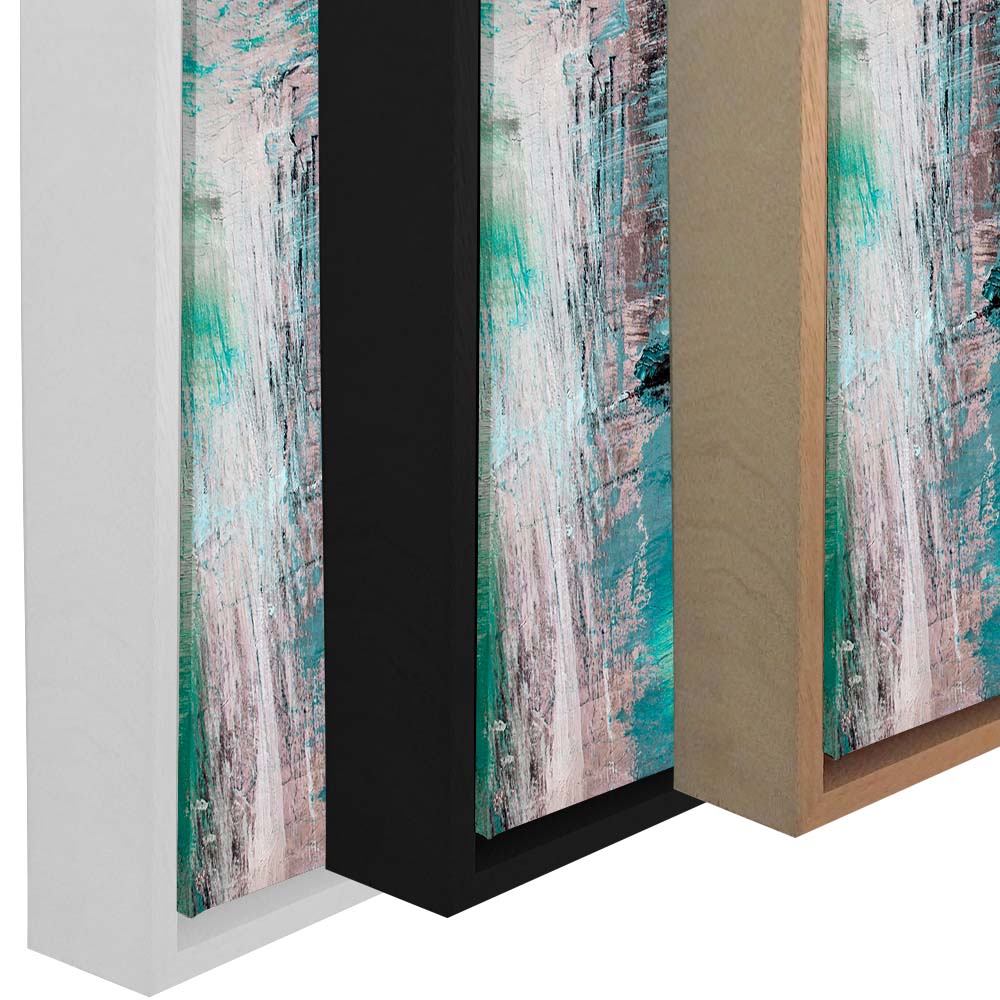 Our canvas prints are fitted with an outer floating frame in a choice of natural oak, satin black or satin white finish that is made from timber composite materials and features a 45mm deep profile.