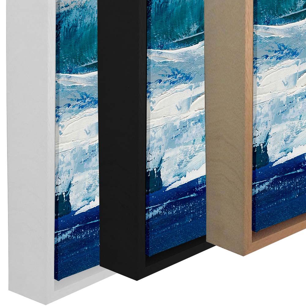 Our canvas prints are fitted with an outer floating frame in a choice of natural oak, satin black or satin white finish that is made from timber composite materials and features a 45mm deep profile.