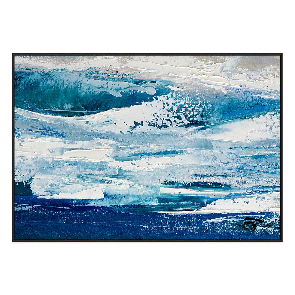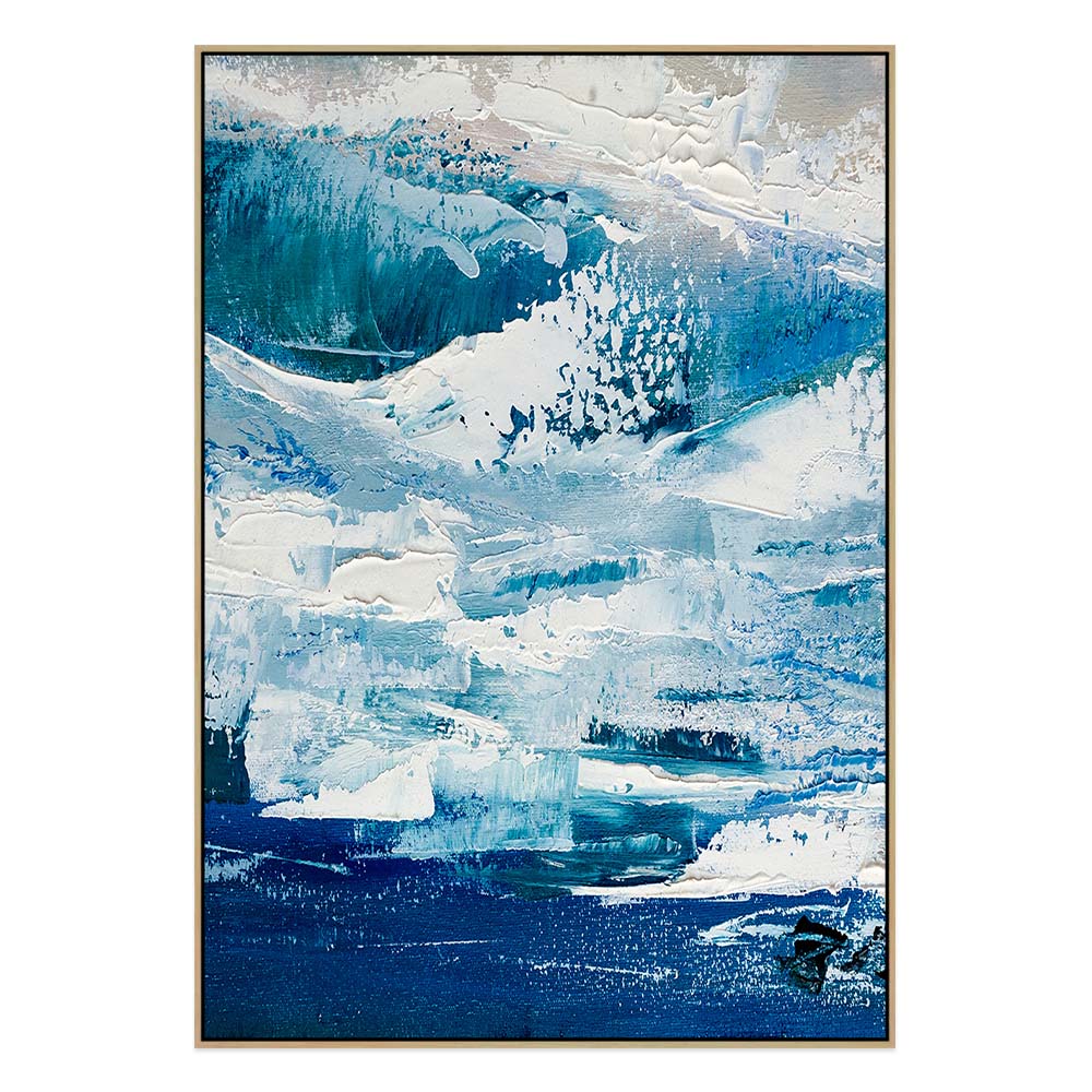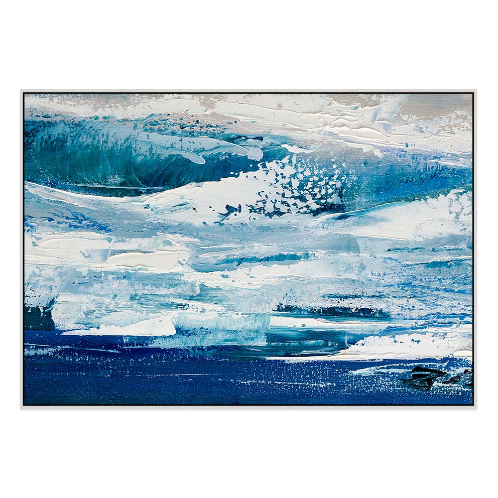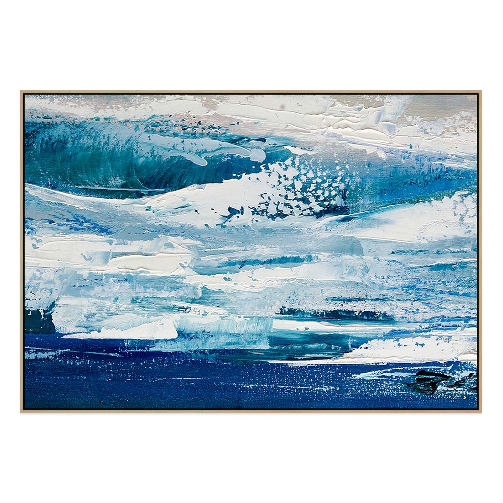 This coastal-inspired abstract artwork blends blue and white tones with soft, natural textures, evoking the calm rhythm of the ocean. Elegant and timeless, it brings a refined coastal sophistication to any modern interior.